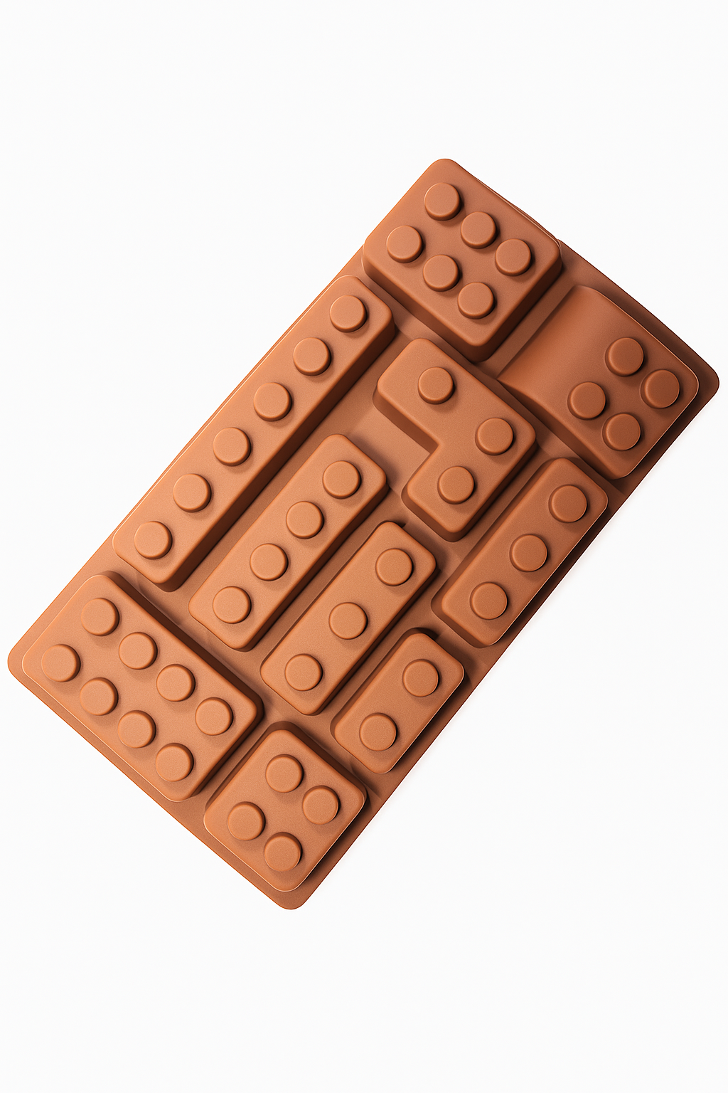 Molde flexible en forma de ladrillos estilo Lego, perfecto para crear piezas artesanales como velas, jabones, chocolates o decoraciones con un toque divertido y creativo.